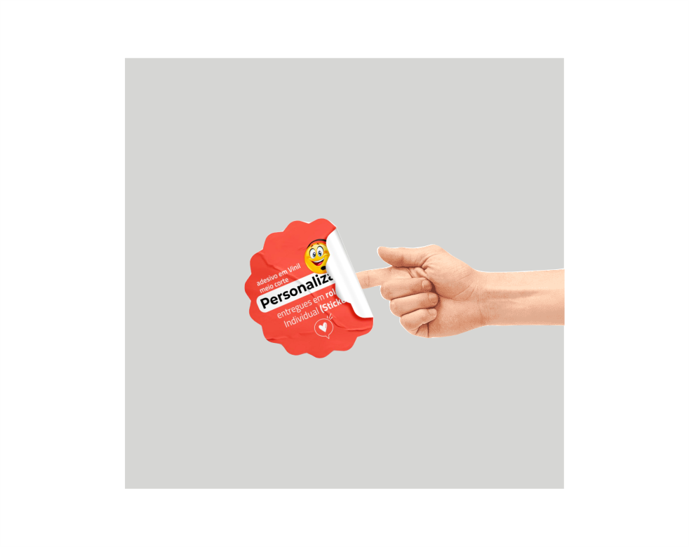 Adesivo Vinil Branco ou Transparente, impressão colorida e meio corte personalizado, formato 4x5 cm