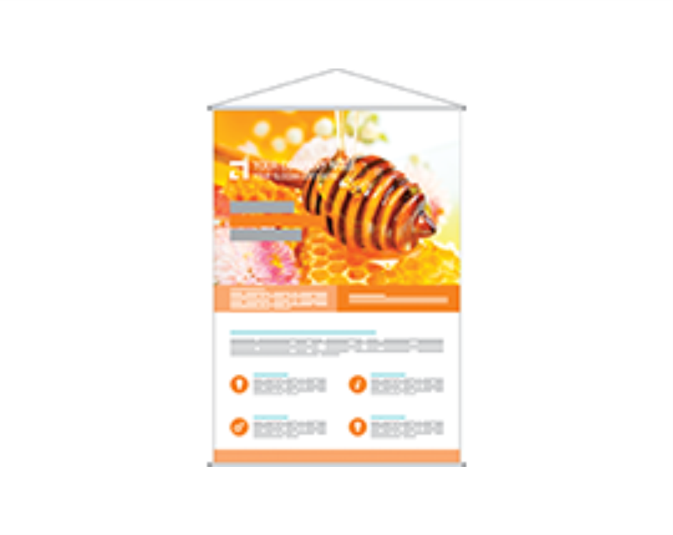 Banner em Lona 380g/m² Brilho ou Fosca formato 70x100cm impressão digital colorido frente.