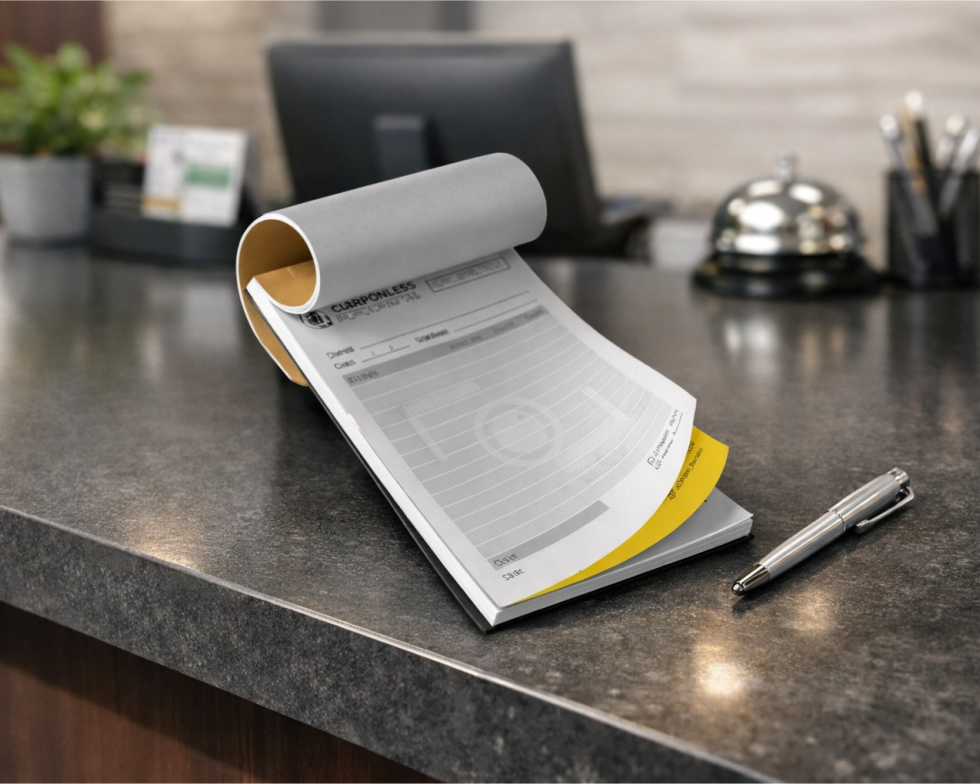 Blocos ou Talões Formato 15x20cm com 1 cor de impressão preto.