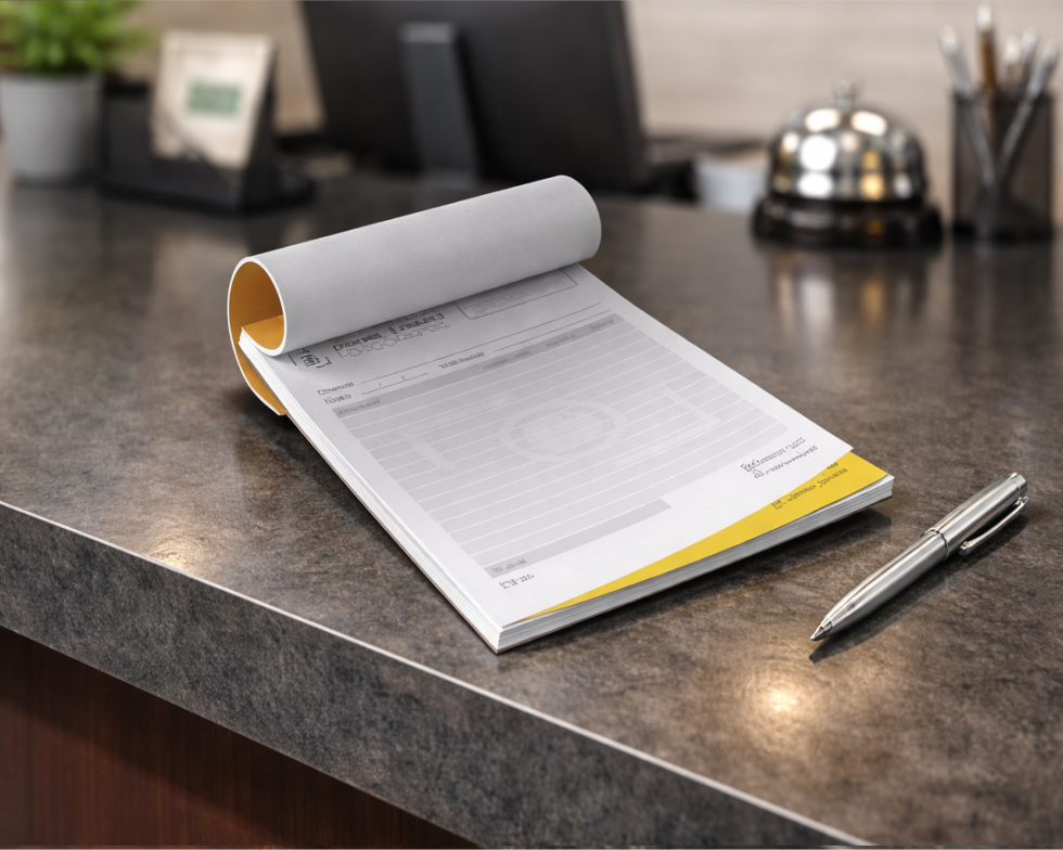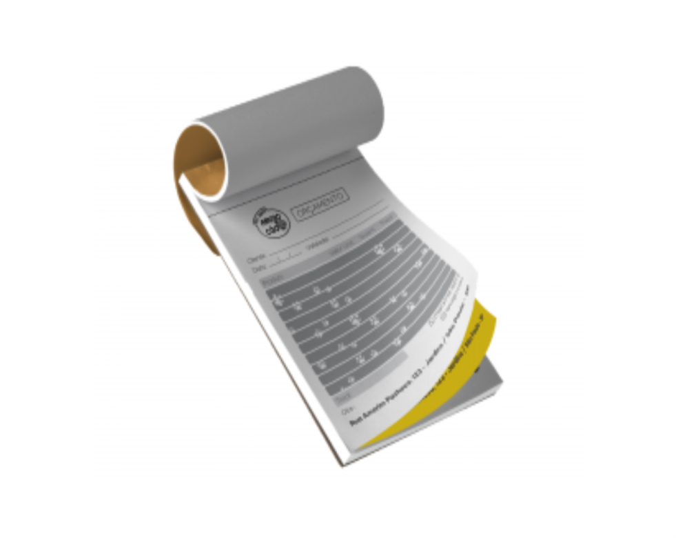 Blocos / Talões Formato 20x30cm com 1 cor de impressão preto.