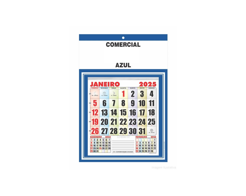 Folhinha Comercial Cartela 18x26 cm com furo e calendarios em bloco destacáveis. Medidas da arte para divulgação: 6x26 cm sem revestimento Produção: 5 dias úteis