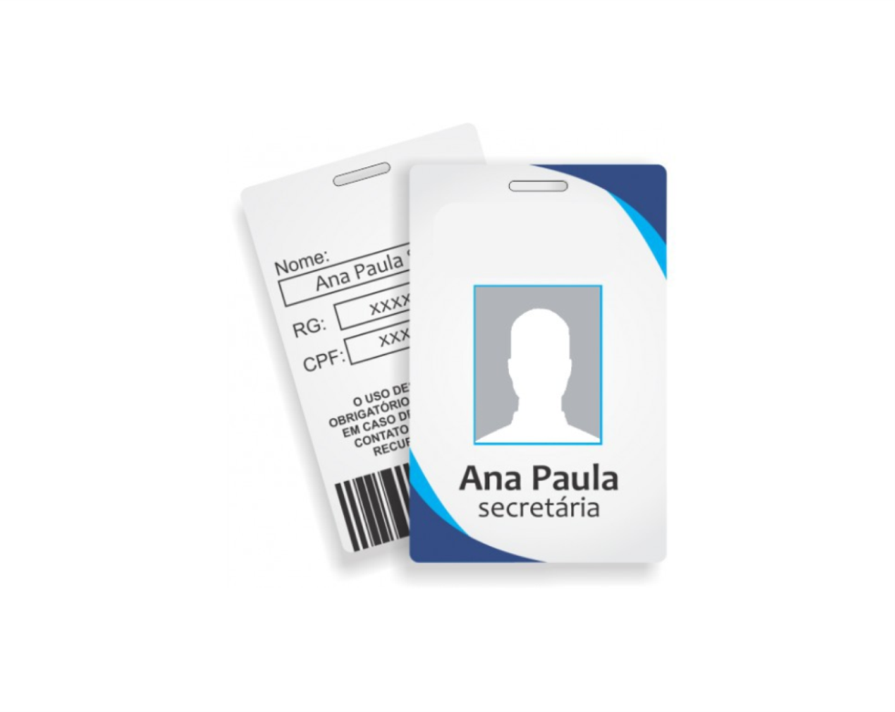Crachá Pvc, Colorido Frente, e Preto no Verso, 4x1 cores, Formato 56x86 mm, com Furo.