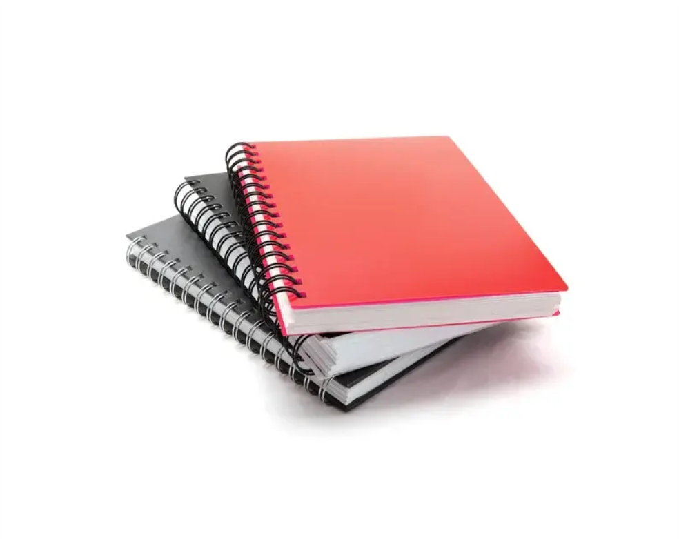 Encadernação, até 100 folhas no formato A4. Revestimento: espiral Capa e contra-capa Acabamento: Furos Formato: 14x20cm A5 Produção: 2 dias úteis