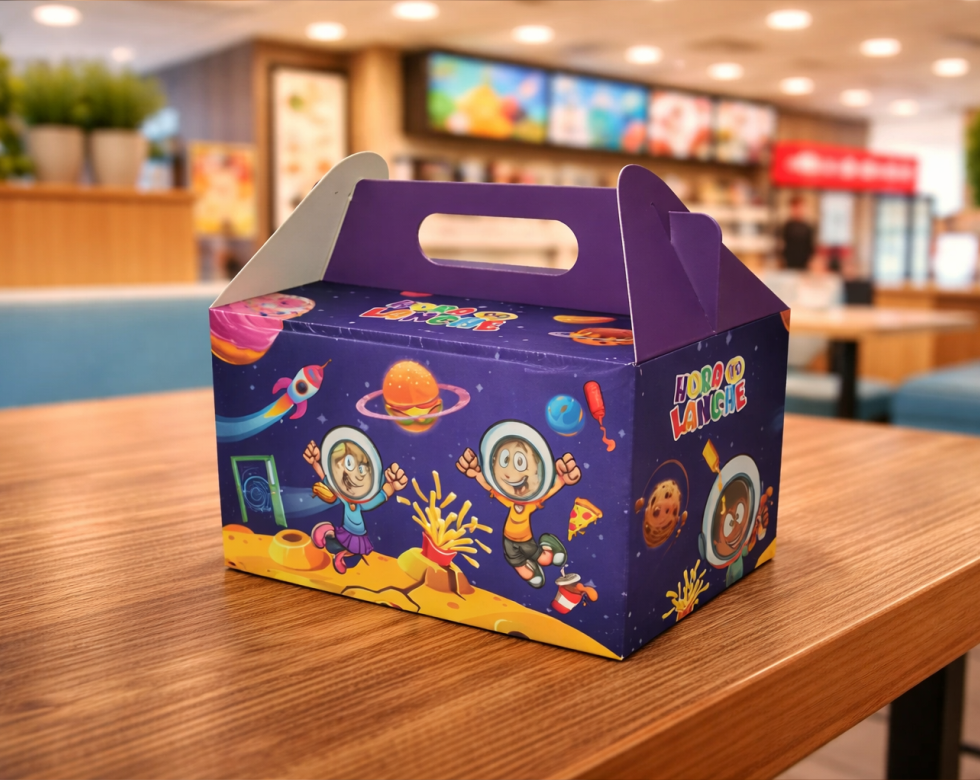 Caixa Maleta Kids Personalizada Papel: 220g Dimensões: 13,5cm x 17,5cm x 10cm Impressão: Colorido Frente Produção: 4 dias úteis