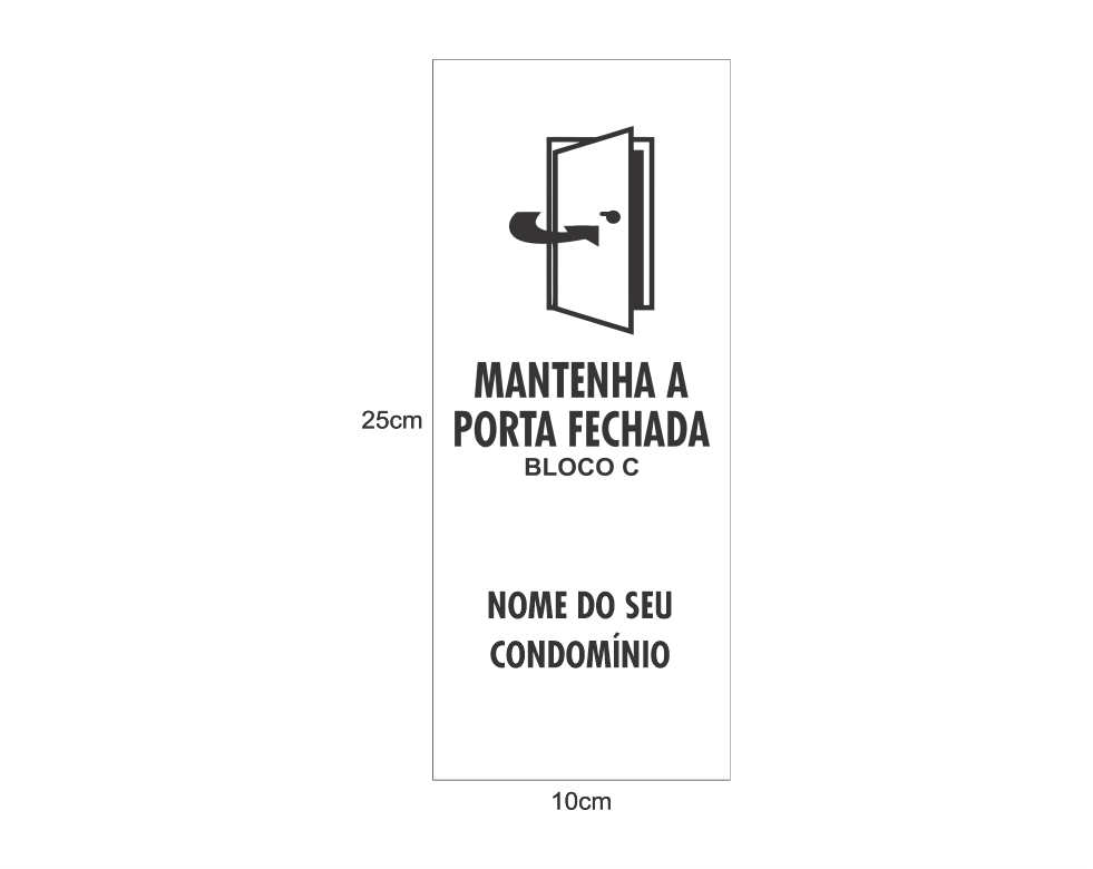 Placa de PVC adesivada, formato 10x25cm sinalização personalizada.