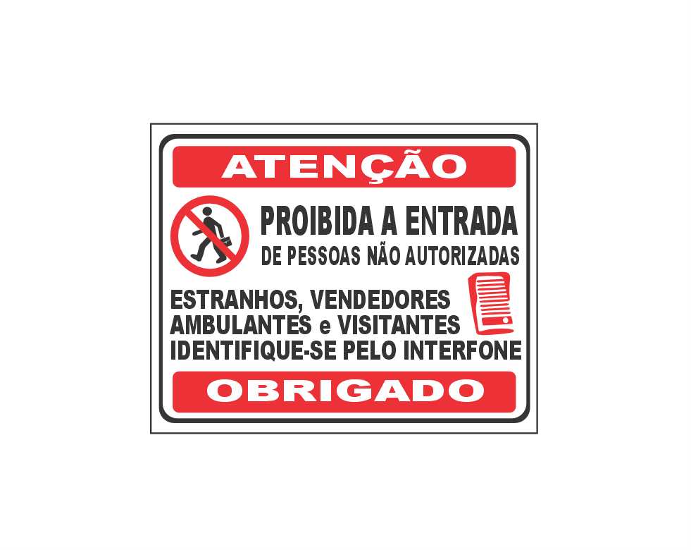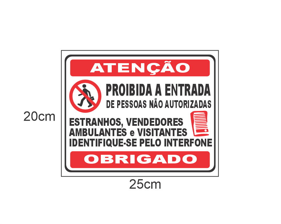 Placa de PVC adesivada, formato 20x25cm sinalização personalizada.