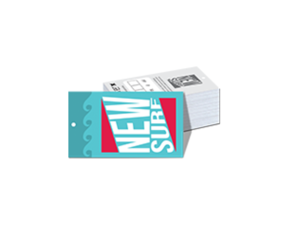 Tag com furo, formato 5x9 cm, colorido frente e 1 cor preto no verso, papel cartão 250g