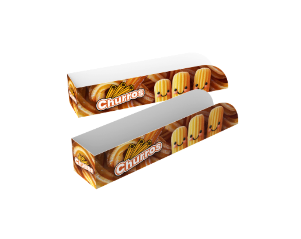 A prática Embalagem para Churros suporta 01 unidade de churros recheado.