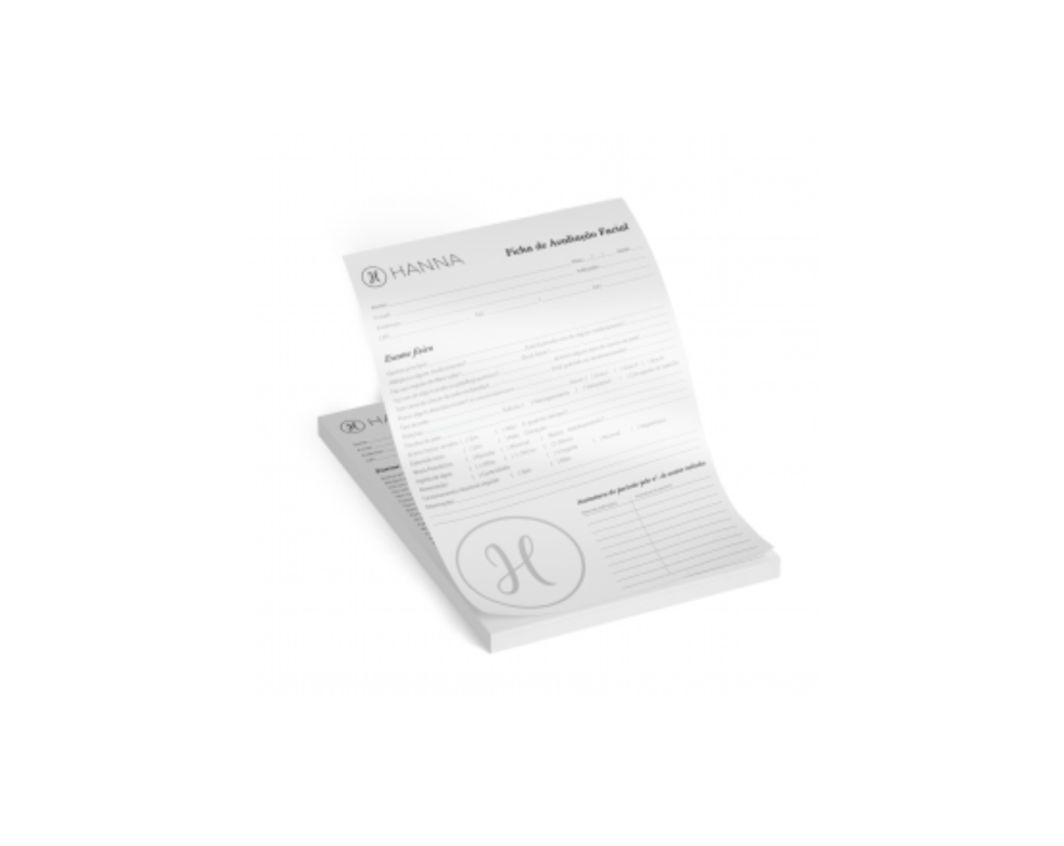 Ficha ou Receituário para clínicas com 1 cor de impressão frente, papel 75g, formato 14x20cm