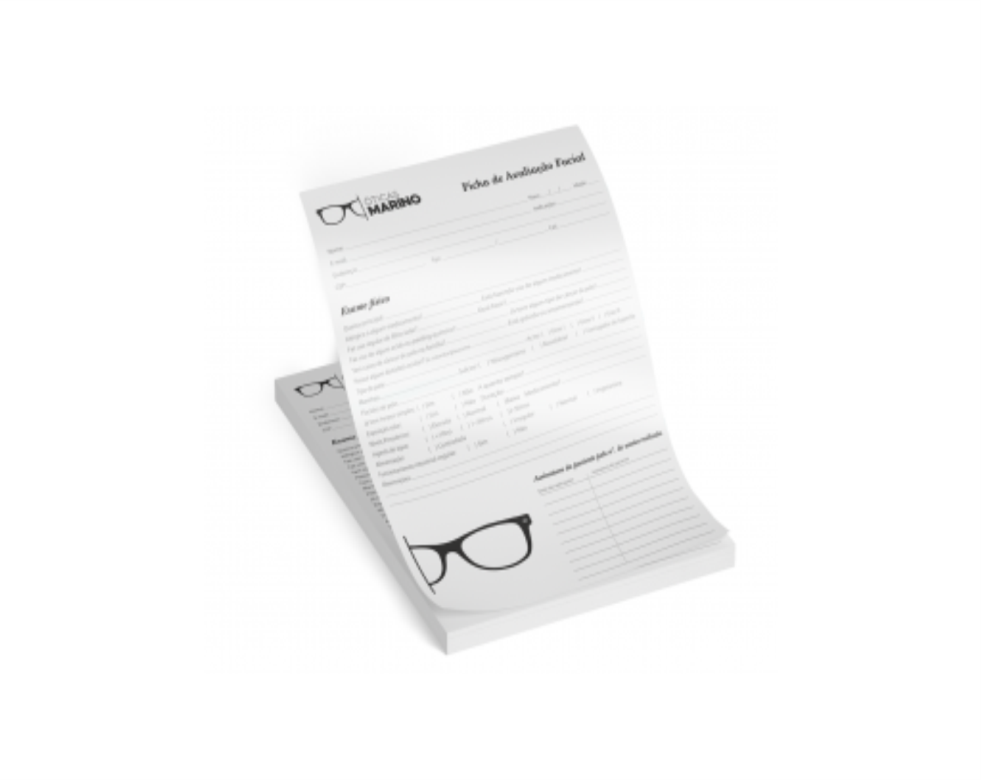 Ficha ou Receituário para clínicas com 1 cor de impressão frente, papel 75g, formato 21x29,7cm