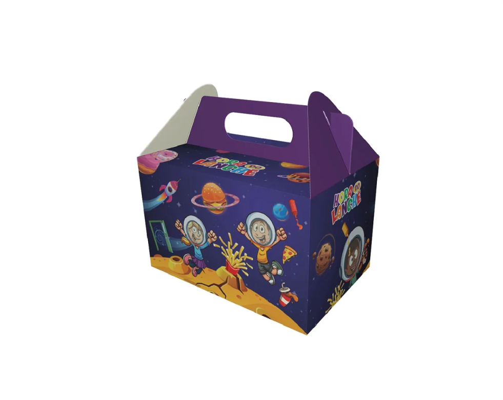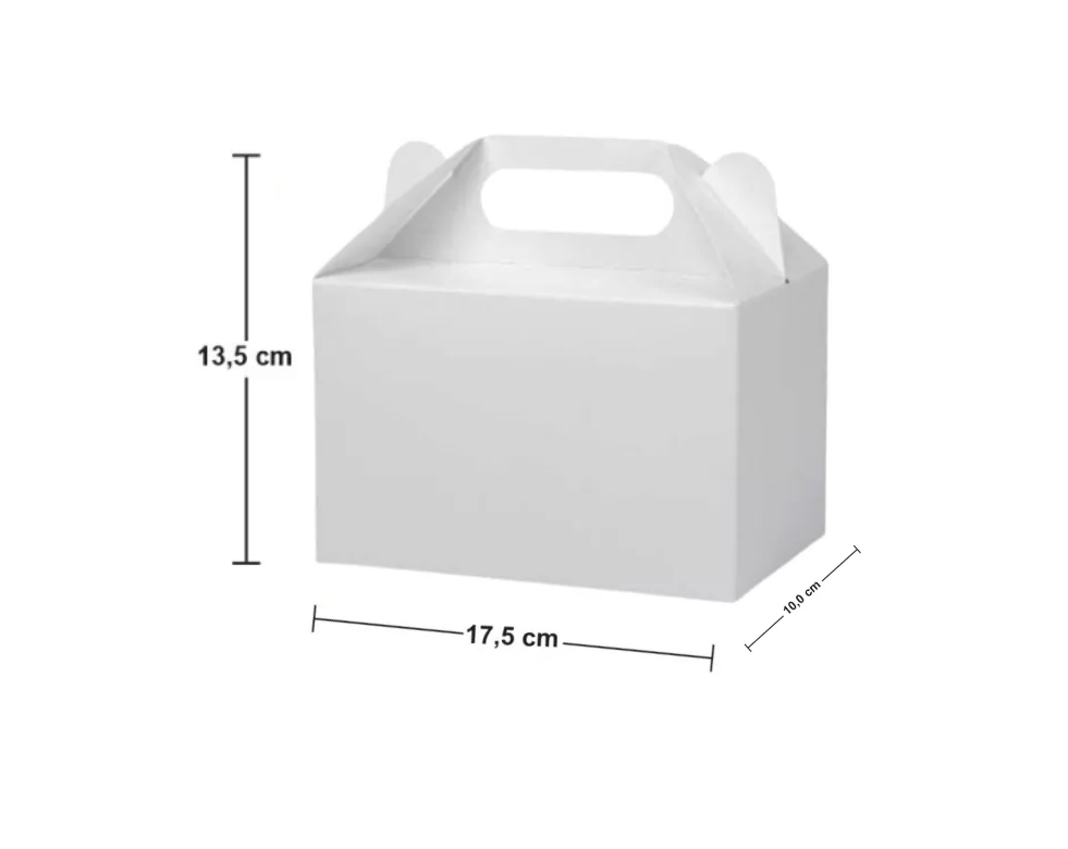 Caixa Maleta Kids Personalizada Papel: 220g Dimensões: 13,5cm x 17,5cm x 10cm Impressão: Colorido Frente Produção: 4 dias úteis