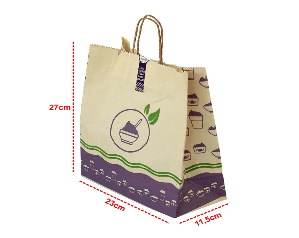 Sacola Kraft para Delivery com Alça personalizado formato 27cm x 23cm x 11cm